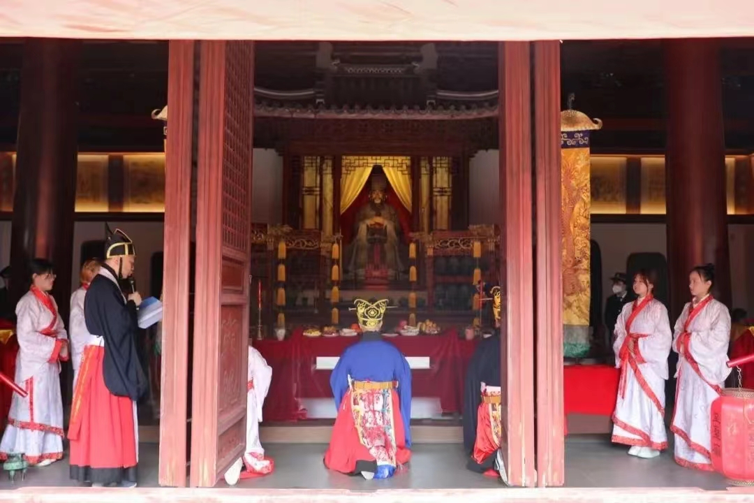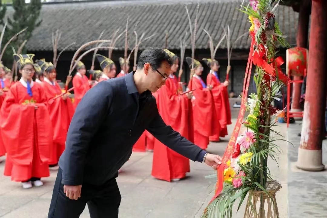 2023年4月1日,上海嘉定孔庙隆重举行了清明祭奠孔子释典礼。上海嘉定区有关领导、社会各界人士出席本次祭孔活动。世界孔子后裔联谊总会副会长、上海孔子后裔联谊会会长孔维众代表孔子后裔行三献礼。上海科学技术职业学院副院长滑智平现场出席典礼,并代表学校向万世师表孔子敬献花篮。
