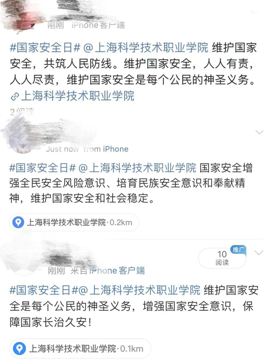 学校通过建立实践育人活动平台,以晨会课堂、主题班会为主,组织师生集中观看“千万师生同上一堂国家安全教育课”主题教育视频;组织学生参与“微博#国家安全日#话题”互动;组织学生观看由国家开放大学联合“央视频”推出的“全民国家安全教育公开课”国防教育系列课程;组织学生开展“反邪教警示教育进校园”活动。同时也依托“信歌青春科院通信”、“柯智造基”、“商贸小掌柜”、“云泽人文”等网络平台进行线上宣传,让师生们都参与到活动中,感受校园文化的力量。