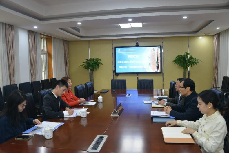 4月19日下午,奥中商业协会副主席张红鸽女士一行,应邀莅临我校指导工作,学校党委书记、院长周胜与张红鸽副主席就筹建ÖSD德语考试中心、推动职业教育国际化等事宜进行了深入探讨。学校党委副书记、常务副院长韩芳,副院长胡晓晖及国际合作交流处相关人员陪同会见。