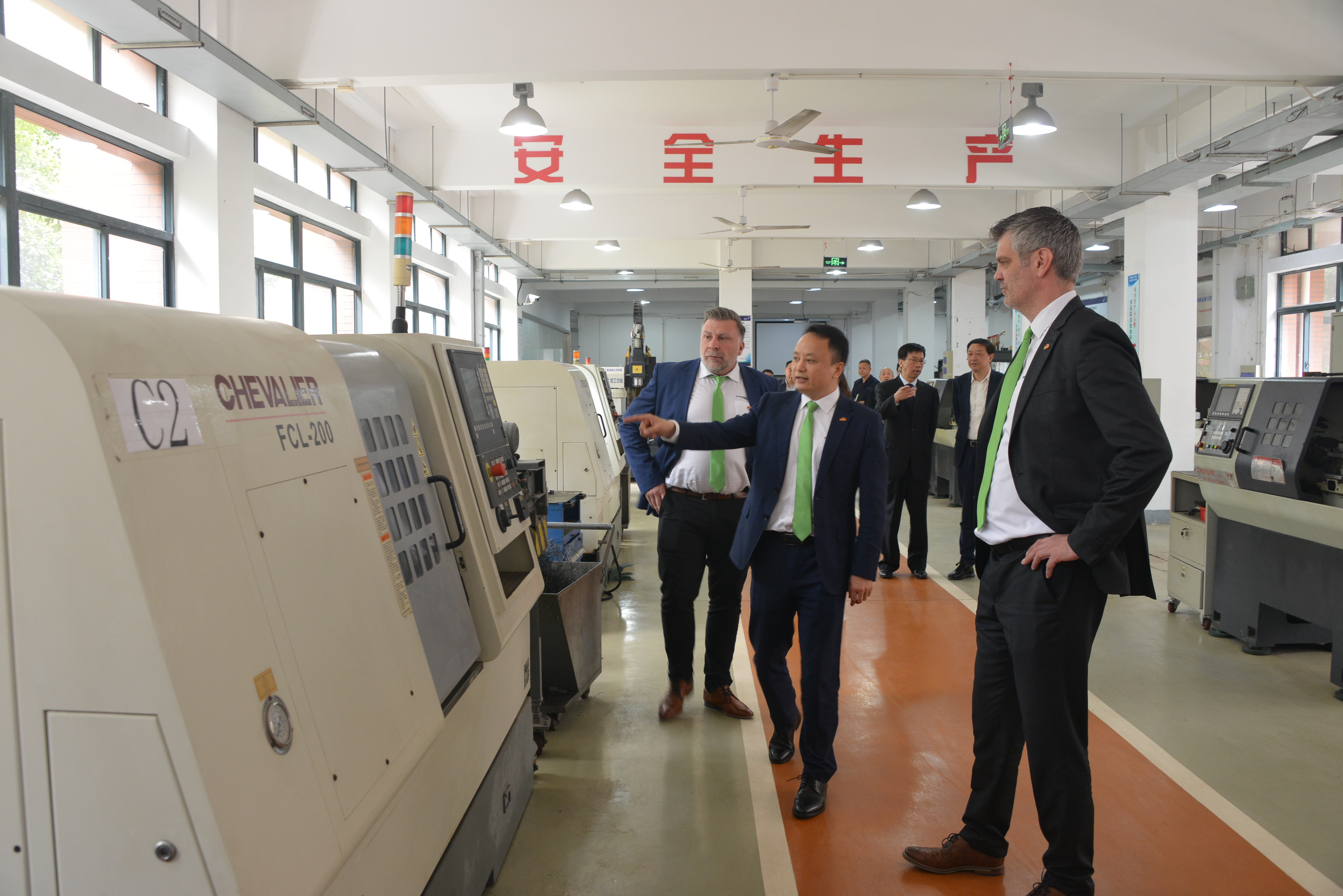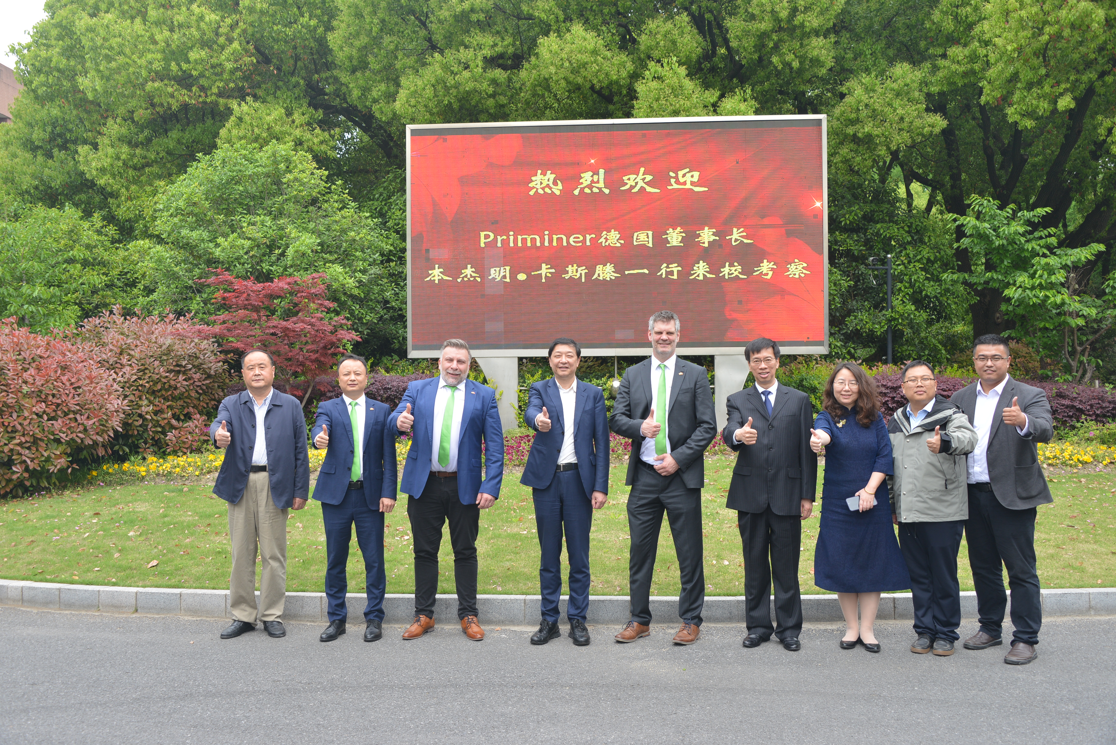 4月18日上午,德国Priminer机床有限公司董事长本杰明·卡斯滕、中国区总经理陈飞跃一行6人莅临我校。致达集团董事长严健军,学校党委书记、院长周胜等领导热情接待。