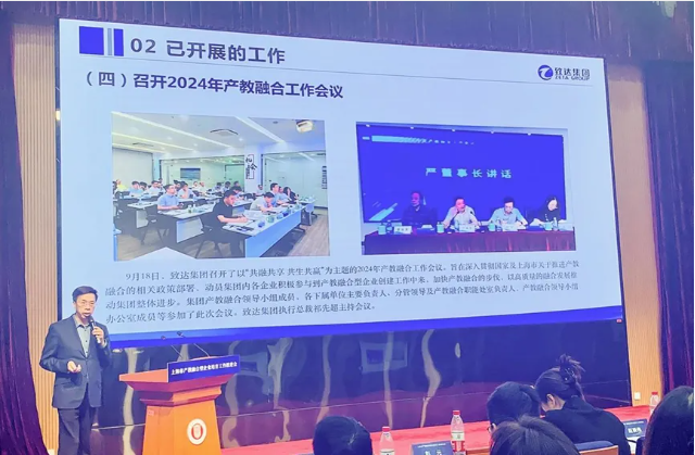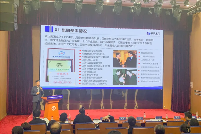 学校党委书记、集团产教融合工作领导小组组长周胜代表致达集团作题为《共融共享·共生共赢 打造产教融合新生态》的交流发言。