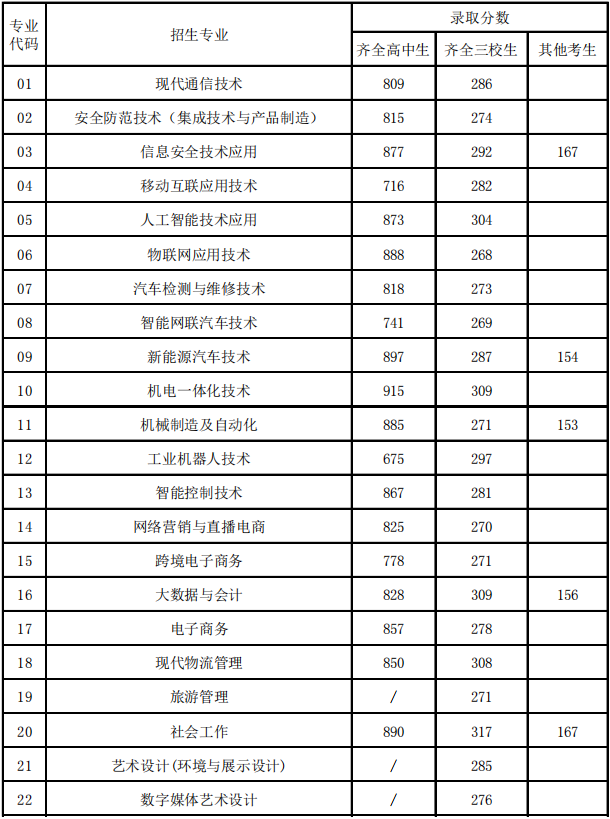 2024年上海科学技术职业学院依法自主招生各专业录取分数线