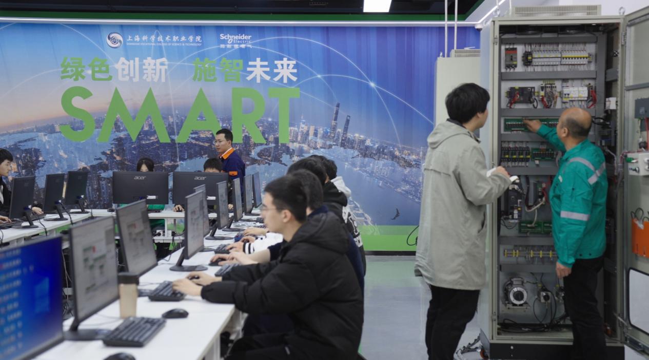 施耐德电气绿色低碳技术中心,是学校与全球产业科技的领先者——法国施纳德电气共建的,集设计、加工、集成于一体的智能化工业控制实训中心。中心通过打造智能运动控制实训室,智慧电机控制实训室,搭建工业4.0数字孪生产线,真实还原施耐德电气技术的运用场景,提供与真实工厂无异的实践教学空间、数字化产业人才培养基地、技术技能创新服务平台,将新技术、新工艺、新规范等产业前沿元素引入教学内容,培养“数字化”和“绿色低碳”的创新型和应用型人才,让受训学生可以快人一步完成人才身份的转换。