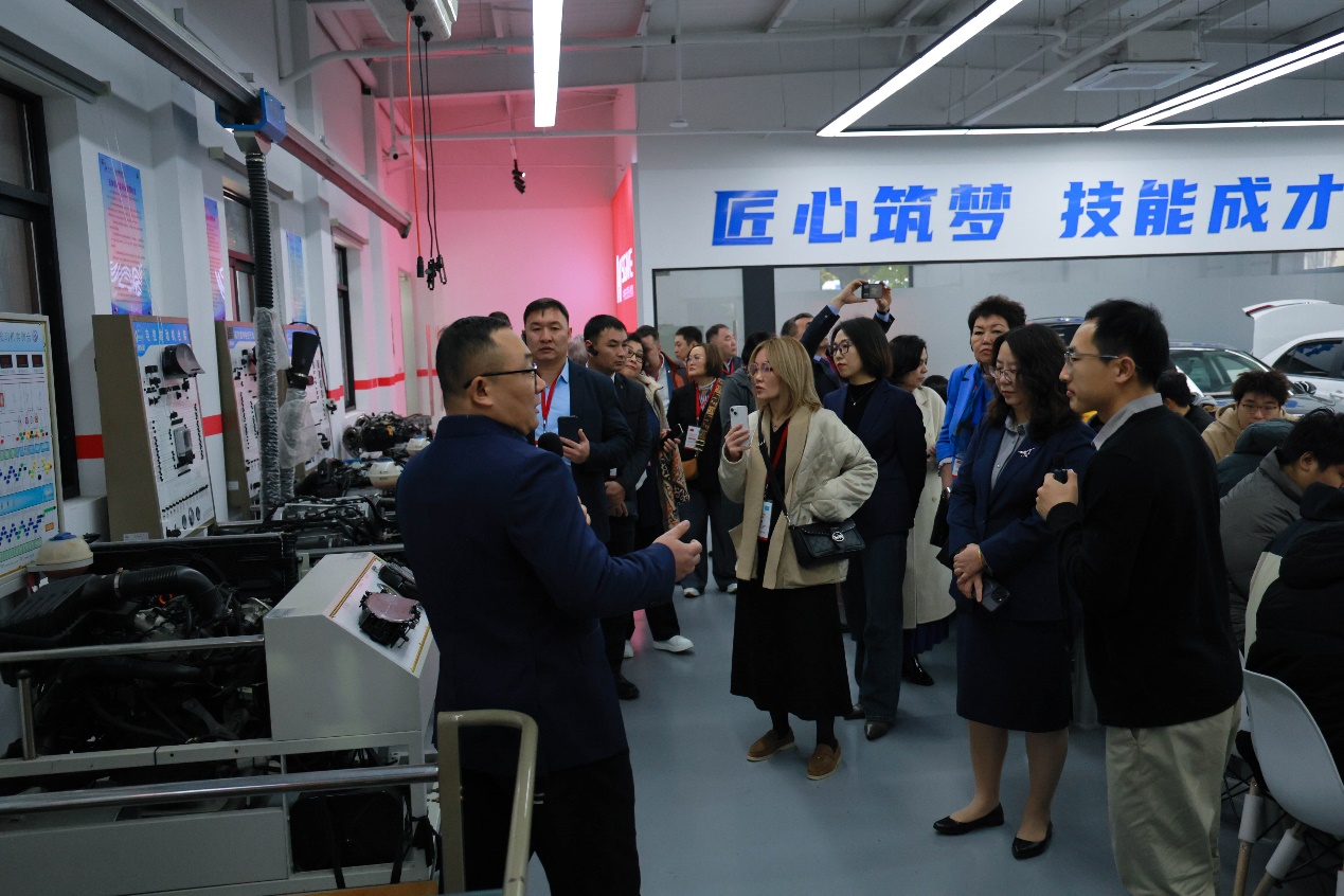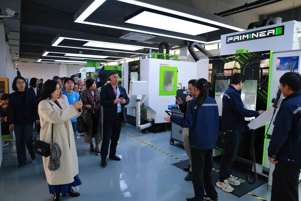 上午9:30,代表团抵达上海科学技术职业学院,在学校领导的陪同下,参观了多个先进的教学与实训中心。包括中德SGAVE先进职业教育示范中心、施耐德绿色低碳产教融合实践中心、腾讯云人工智能产业学院、百度Apollo智能网联汽车产业学院、德国普锐米勒机床(上海)技术中心、蔚来新能源汽车产教融合实践中心、数字资源建设中心、现代服务产业学院等。展示了科技学院在职业教育领域的创新成果,尤其是在智能制造、绿色低碳技术、人工智能等前沿领域的教学与实践能力。