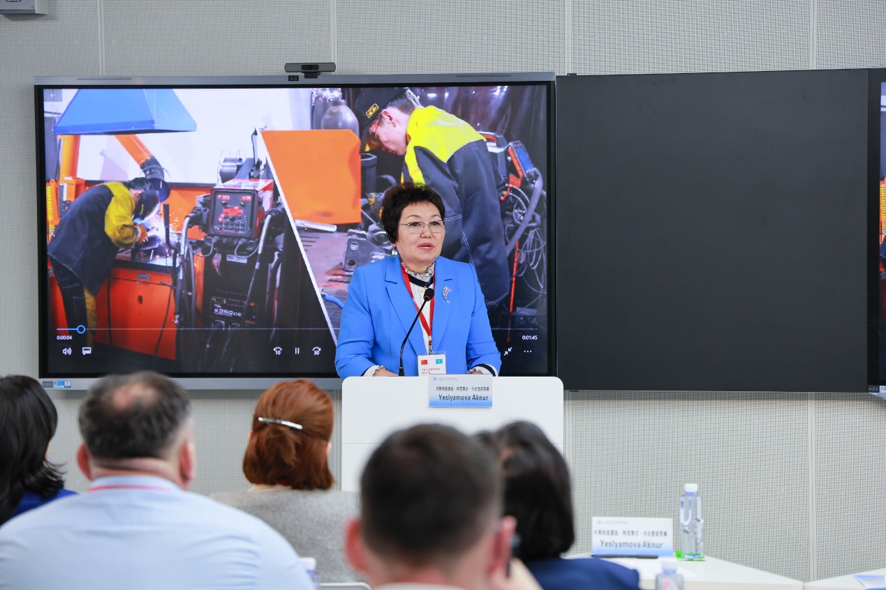 随后,双方在数字资源中心举行了会议交流。会上,周胜对代表团的到来表示热烈欢迎。韩芳详细介绍了学校的办学情况,特别是在职业教育领域的创新实践和国际化合作成果。哈萨克斯坦卡拉干达州教育代表团的代表们也发表了讲话,表达了与上海科学技术职业学院深化合作的意愿。