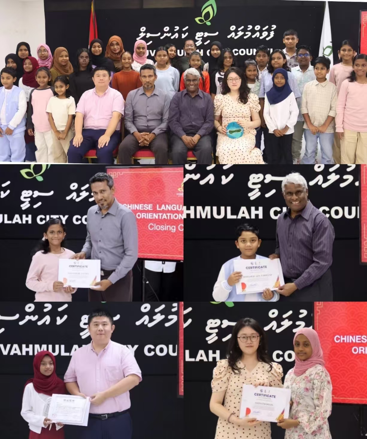 5月7日晚,培训结营仪式在马尔代夫富瓦穆拉市培训中心举行。马尔代夫富瓦穆拉市市长伊斯梅尔·拉菲克、马尔代夫前驻华大使兼中马文化交流协会会长莫芮德、培训教师江舟和王梦娇共同出席仪式。现场,伊斯梅尔·拉菲克、莫芮德以及江舟、王梦娇为全体学员颁发了结业证书,伊斯梅尔·拉菲克还特别为两位教师颁发了培训证明,以表彰他们在本次培训中的贡献。