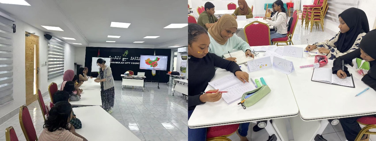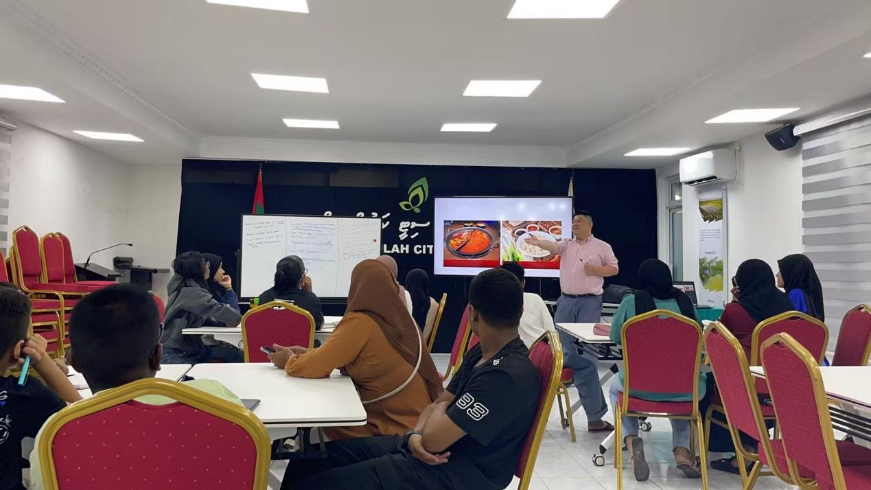 在为期三周的培训中,两位教师精心设计了理论与实践相结合的课程,涵盖语言学习、文化体验和职业技能三大模块,来自马尔代夫的50余名学员参加了课程学习。