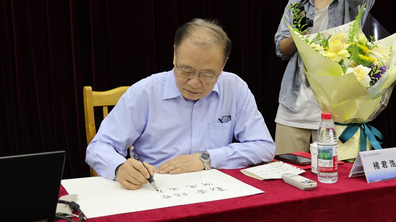 讲座结束后,褚君浩欣然提笔,对我校师生写下“勤奋好奇、渐进远志”的寄语,苍劲有力的字迹不仅寄托着对青年学子的殷切期望,更成为激励全校师生投身科研创新的精神旗帜。