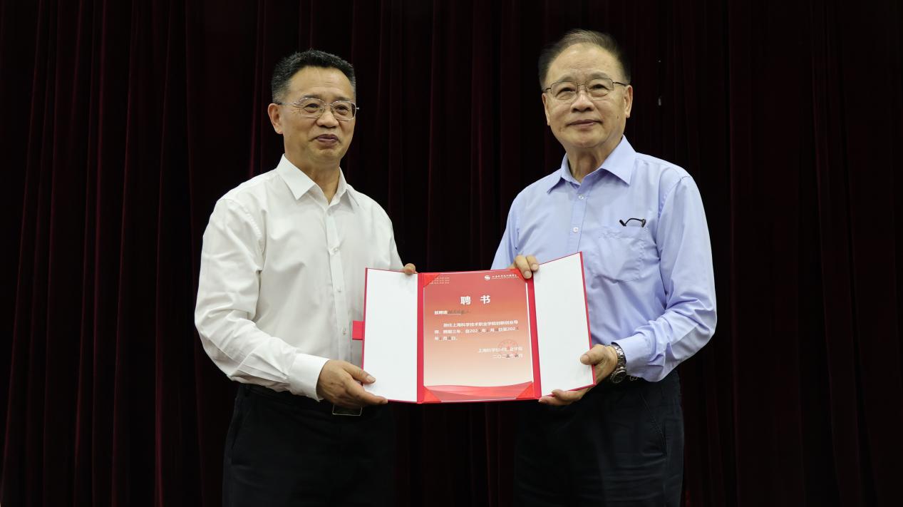 在热烈的掌声中,杨益明代表学校为褚君浩颁发创新创业导师聘书,并表示期待在院士的引领下,培育更多兼具科研深度与实践价值的创新成果,培养创新人才,推动科研与教育深度融合发展。