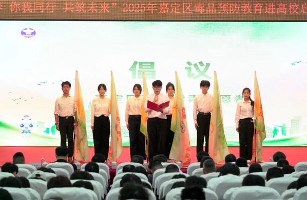 今年6月是第15个全民禁毒宣传月,为进一步加强禁毒宣传工作,提升大学生识毒、防毒、拒毒的意识和能力,营造“6·26”全民禁毒的浓厚氛围,2025年6月16日,“致青春 你我同行 共筑未来”2025年嘉定区毒品预防教育进高校启动仪式在我校举行。此次活动由上海市禁毒委员会办公室、上海市禁毒志愿者协会指导,中共上海市嘉定区委政法委员会主办,嘉定镇街道党工委、办事处、上海科学技术职业学院承办,中国邮政集团公司嘉定分公司协办。上海市禁毒办主任周国庆,嘉定区委常委、政法委书记卞唯敏,嘉定镇街道党工委书记、人大工委主任徐嵘,学校党委书记周胜,嘉定镇街道党工委副书记、办事处主任顾海峰,嘉定区委政法委副书记王良华,嘉定镇街道党工委副书记王陈芳,上海市禁毒志愿者协会副秘书长乔坚,中国邮政嘉定分公司城中路邮政支局支局长朱洪庆等人出席会议。