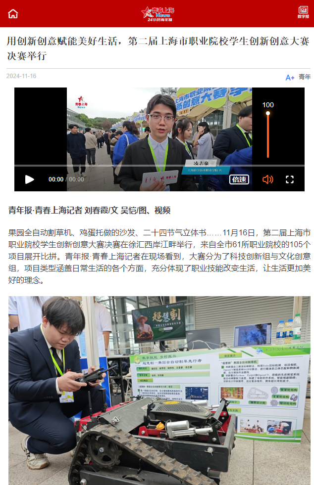 图7 《超慧割-果国全自动割草机无行者》项目被“青春上海”报道