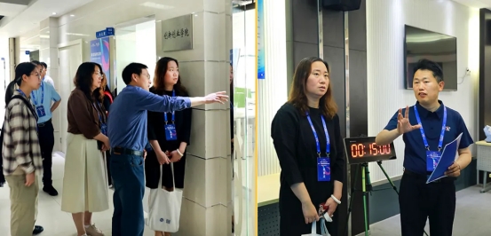 比赛期间,上海市教育装备中心职教科潘波科长亲临现场,深入了解赛事组织和运行情况,并与赛项裁判长就比赛流程、规则执行等方面进行了细致交流。她走进参赛选手中间,亲切询问比赛感受与收获,认真倾听他们的想法与建议,鼓励大家沉着应战、发挥水平,展现出新时代职教学子良好的职业素养与竞技风采。
