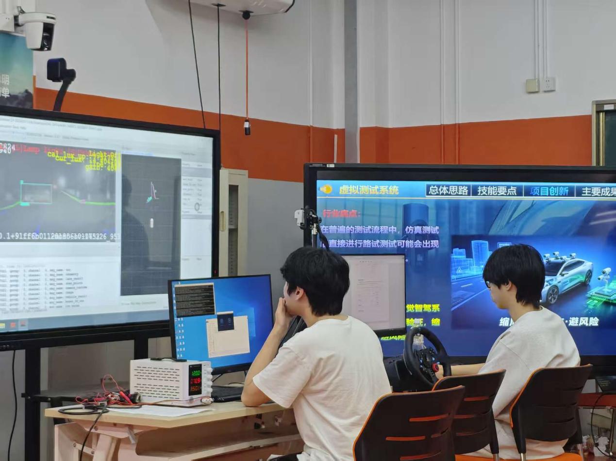 参赛团队由智能制造工程学院党总支书记陈飞担任领队,专业教师胡明亮担任指导教师。备赛过程中,团队聚焦智能网联汽车领域,结合企业调研发现当前智能网联汽车领域存在自动驾驶方案优化迭代成本高昂的问题。团队利用虚拟仿真、数据回灌技术,创新开发出一款能够利用仿真道路进行模型迭代的纯视觉感知与决策模型的迭代方案,该方案的提出大大降低了模型迭代时所需要消耗的人力物力,降低了感知与决策模型训练的成本。同时利用线控底盘技术开发了一款线控底盘平台,两者结合即可实现更低成本的智能网联汽车改造方案。