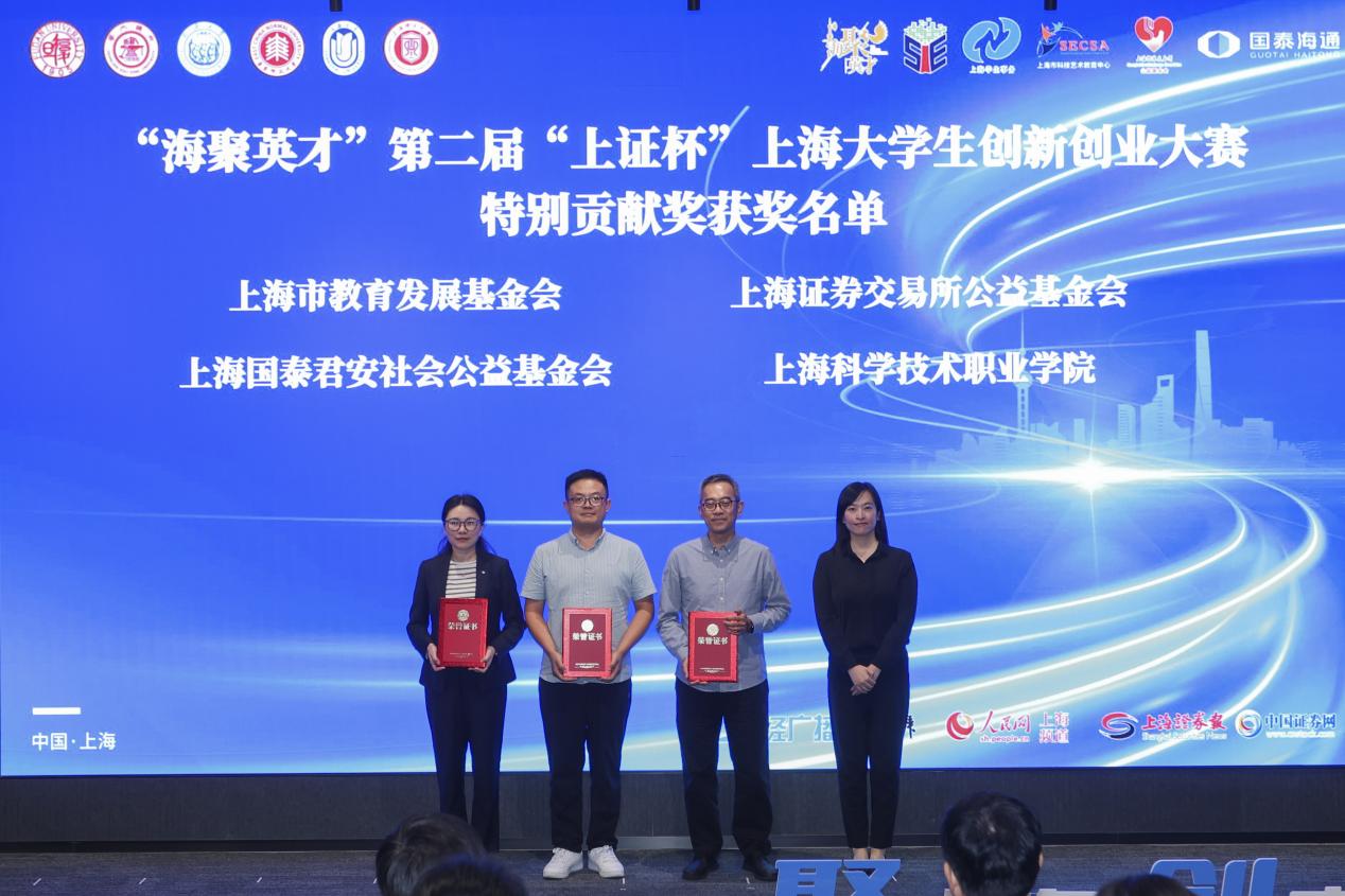 2025年9月19日,“海聚英才”第二届“上证杯”上海大学生创新创业大赛(以下简称“大赛”)颁奖仪式在上海创智学院举行,我校在本届大赛中荣获1个三等奖,学校荣获“优秀组织奖”、“特别贡献奖”,也是唯一获“特别贡献奖”的院校,任晔、许云峰荣获“优秀组织(个人)奖”,我校在本届大赛中的获奖等级、数量及参赛规模均实现历史性突破,创下历史最好成绩。