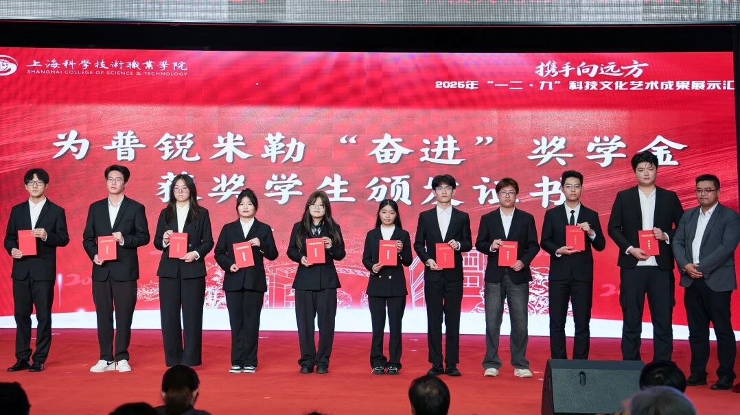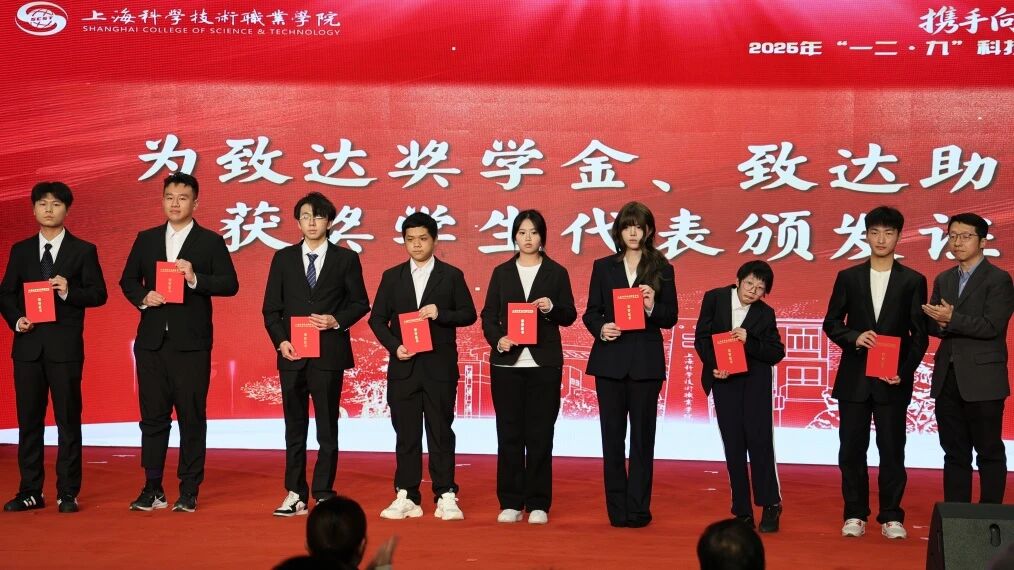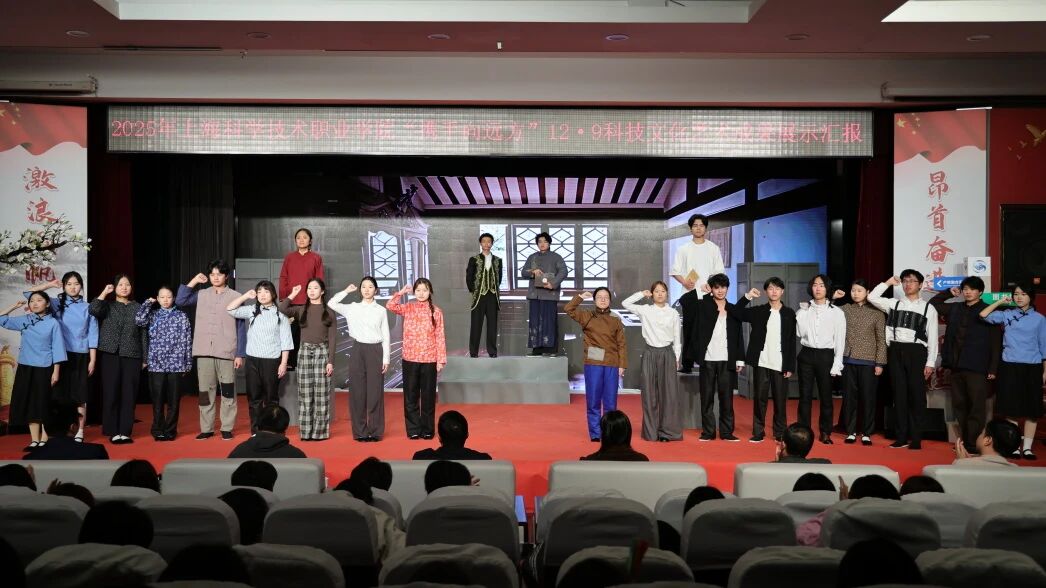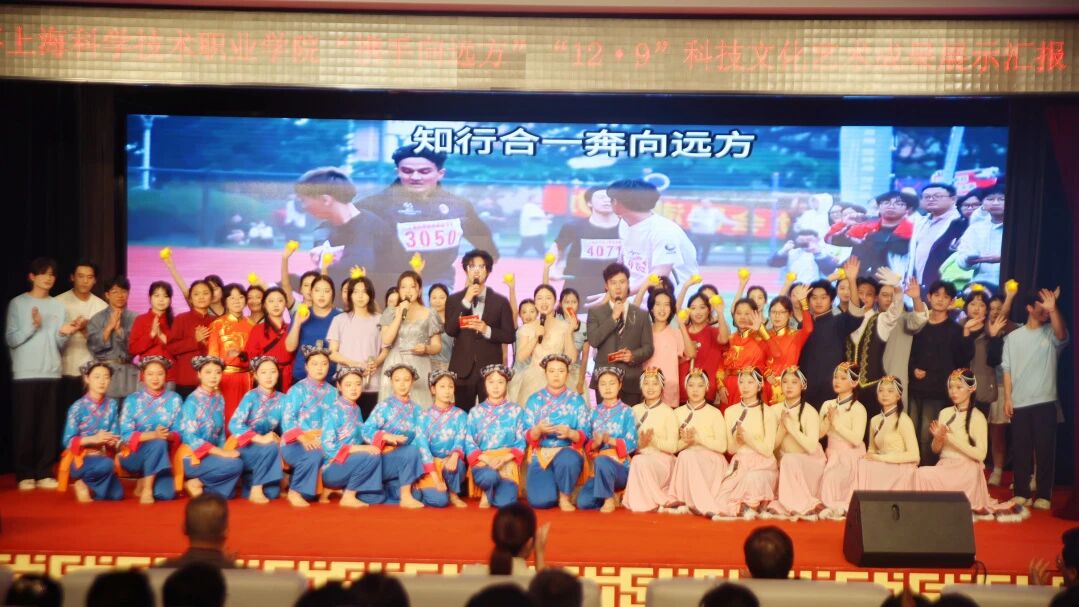 12月10日晚,上海科学技术职业学院2025年“一二·九”科技文化艺术成果展示汇报在学校报告厅举行。本次活动以“携手向远方”为主题,纪念“一二·九”运动九十周年,传承爱国主义精神,集中展示一年来学校在科技、文化、艺术育人方面的丰硕成果。