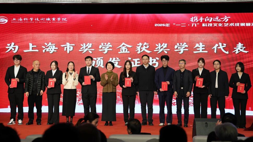 2025年“一二·九”科技文化艺术成果展示汇报在《携手向远方》的歌声中圆满落幕。整场活动既是对过去一年的深情回顾,更是对未来征程的热情展望。上海科学技术职业学院将继续坚持立德树人,深化产教融合,推进文化育人,激励广大青年学子传承“一二·九”精神,勇担时代使命,在实现民族复兴的赛道上奋力奔跑。