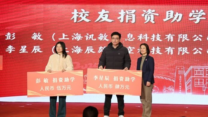 在捐资助学仪式环节,上海致达公益基金会、上海启光思远文化发展有限公司、上海申嘉教育发展有限公司、科灵安防科技(上海)有限公司分别向学校捐赠10万元,学校党委副书记、常务副院长许金如代表学校接受捐赠。