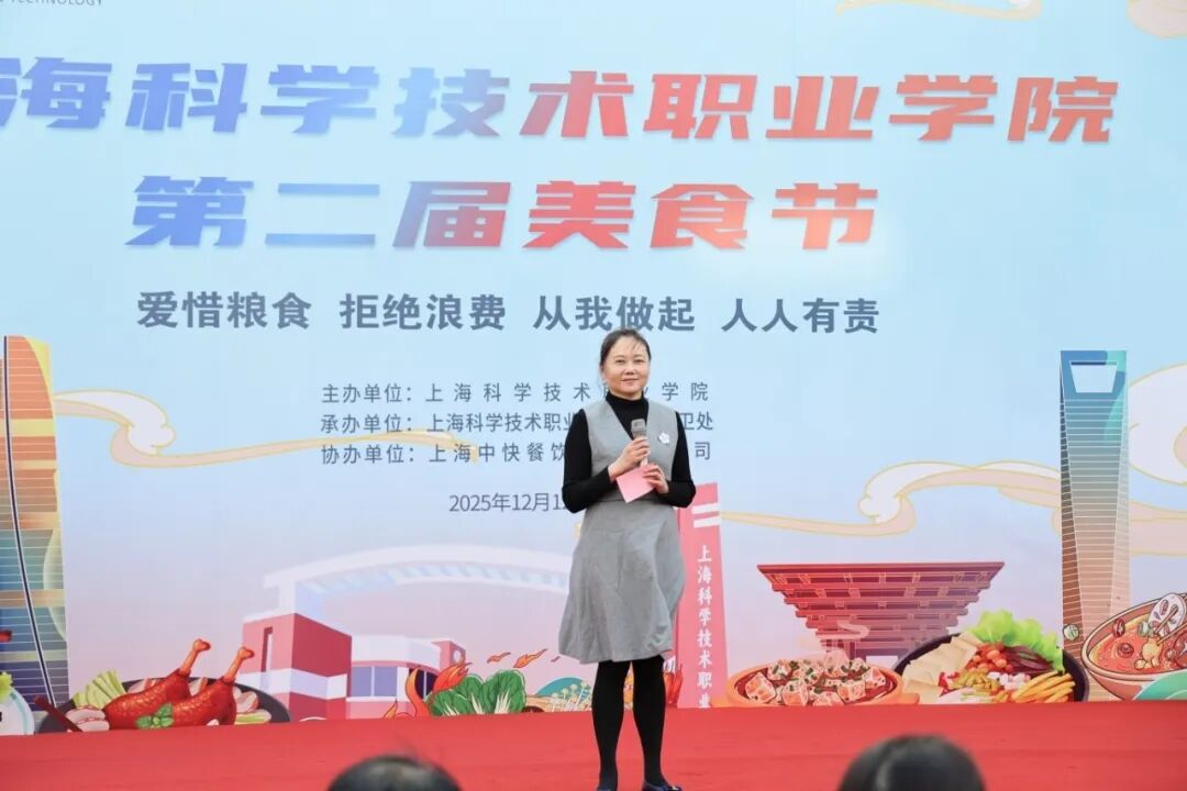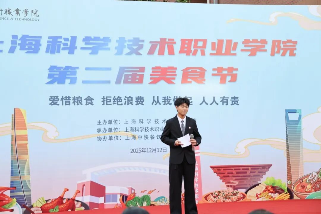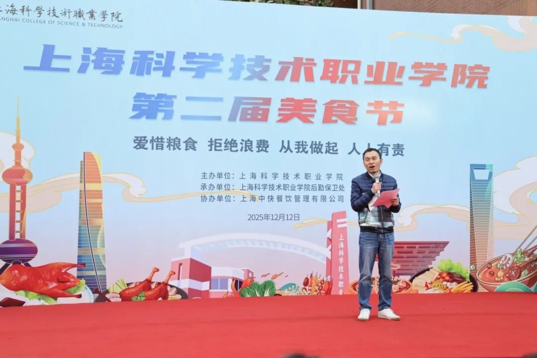 学生代表卜建党深情发言。他讲述了学校食堂饭菜对离家学子的特殊意义,感谢食堂和后勤人员的默默付出。回忆起去年美食节上的钟造型蛋糕,他感慨时光飞逝,珍惜在大学两年里的成长与校园美好记忆,并祝愿学校美食节越办越热闹,愿校园的温暖常伴师生。