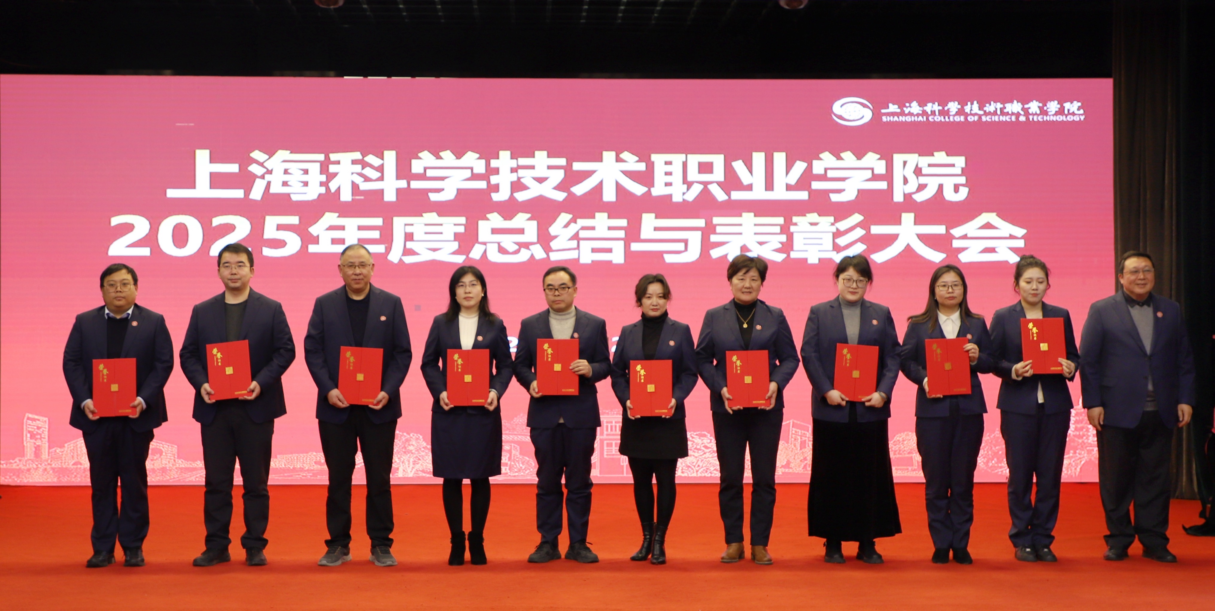 周胜作讲话。他首先代表学校党政,向受表彰的先进集体和个人表示最热烈的祝贺,向一年来辛勤耕耘、默默奉献的全体教职员工致以崇高敬意和诚挚感谢。他表示,2025年全校教职员工共同经历了十四五的圆满收官与“十五五”蓝图的精心擘画,共同见证了“新双高”建设的激昂开局,更共同迎来了在上海市高校分类评价中获评A档、跻身第一方阵的历史性突破。2026年是学校实施十五五规划的开局之年,也是新一轮双高建设攻坚克难、提质增效的关键之年。站在新的历史起点,并对全体教职员工提出三点要求:一是坚守党建引领,筑牢发展根基,推动党建与事业深度融合,以高质量党建护航高质量发展;二是强化使命担当,深耕产教融合,聚焦产业需求,把服务区域发展、赋能产业升级落到实处;三是聚焦内涵提质,深化教育教学改革,建强师资队伍,擦亮办学特色,巩固A档成果、争当行业标杆。他希望全体教职员工凝聚奋进合力,以先进典型为榜样,秉持龙马精神、保持奋进姿态,笃行实干、锐意进取,共同谱写学校“十五五”开局和“新双高”建设新篇章。
