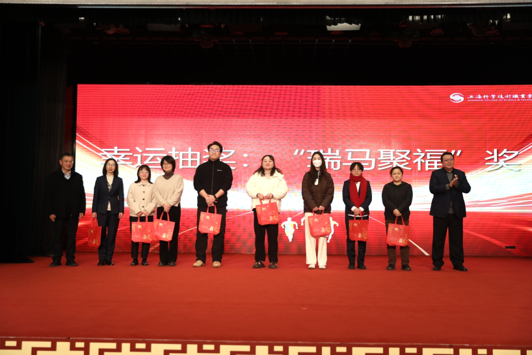2026年1月23日下午,上海科学技术职业学院三楼报告厅洋溢着喜庆祥和的氛围,以“新程启华章,同心向未来”为主题的2026年教职工迎新联欢会在此举行。学校全体党政班子成员与全体教职工欢聚一堂,共迎新春、共话发展、共启新程。
